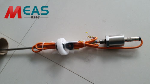 2、在测量过程是由位移传感器的电子室内产生电流脉冲,该电流脉冲在波导管内传输,从而在波导管外产生一个圆周磁场,当该磁场和套在波导管上作为位置变化的活动磁环产生的磁场相交时,由于磁致伸缩的作用,波导管内会产生一个应变机械波脉冲信号,这个应变机械波脉冲信号以固定的声音速度传输,并很快被电子室所检测到。